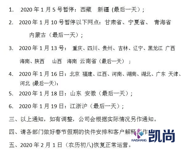 1月5日开始,新疆西藏停止揽件,1月19日起全面停止快递揽收,请大家提前安排下单事宜,春假期间不发货,给您带来不便还请见谅哦。