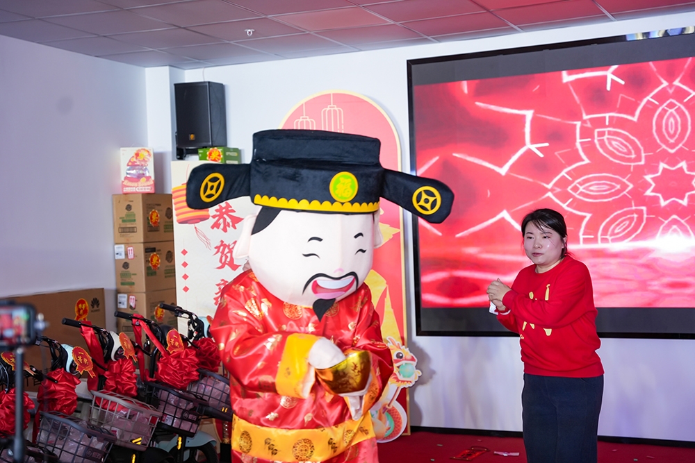 此外,表演《恭喜发财》也成为了年会上的一大亮点。该节目不仅表达了新年祝福的美好寓意,更通过两位财神扮演者的生动演绎,生动呈现了暴富的象征,赢得了全场观众的阵阵掌声和喝彩声。